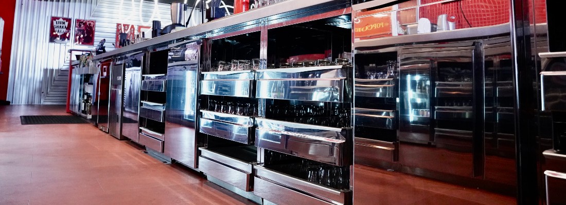 Kompleksowe wyposażenie baru zapewniają meble i urządzenia Dora Metal z serii Bar Line oraz masterBar firmy Komat.